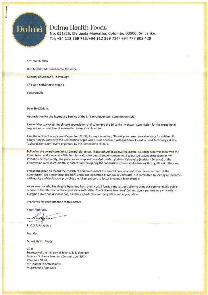 We are proud to share this letter of appreciation received from an inventor. This recognition reflects our ongoing commitment to supporting innovation and empowering inventors across the nation. We extend our sincere gratitude and remain dedicated to driving impactful initiatives forward.